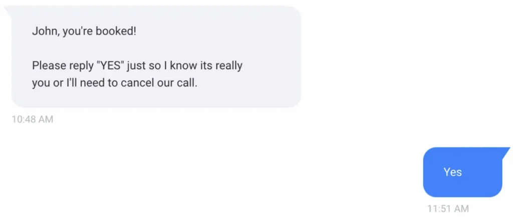 STEP 2: Reply YES to Confirm Your Call & Add To Your Calendar
